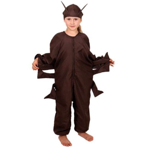 Piękny kostium Mrówki to kombinezon z odnóżkami w kolorze brązowym. Kostium zapinany jest z przodu, dzięki czemu dziecko może się samo przebrać. W zestawie znajduje się również opaska z czułkami.