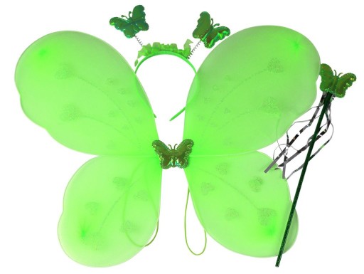 KOMPLET : SKRZYDŁA + OPASKA + RÓŻDŻKA - MOTYL / MOTYLEK/ WRÓŻKA ZIELONE