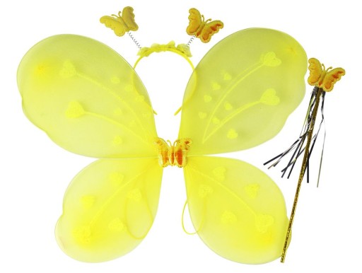 KOMPLET : SKRZYDŁA + OPASKA + RÓŻDŻKA - MOTYL / MOTYLEK/ WRÓŻKA ŻÓŁTE