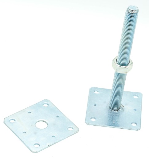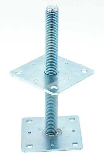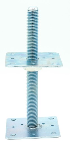 Podstawa słupa regulowana przykręcana ułatwia montaż elementów drewnianych z betonem. Regulacja umożliwia ustalenie wysokości montowanego elementu w zakresie do 250 mm. Dzięki takiemu rozwiązaniu już po montażu można regulować odległość słupa od podłoża.