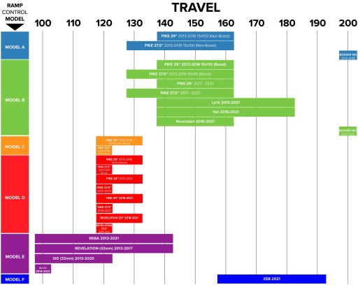 - Ramp Control nie są kompatybilne z Vorsprung Suspension's Luftkappe w 150 i 160mm Piku oraz 170 i 180mm Lyriku i Yarim.