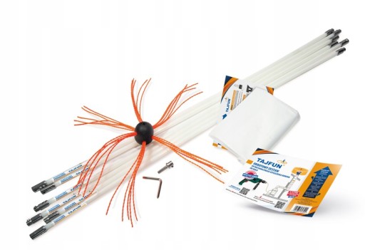Zestaw Tajfun został zaprojektowany do usuwania lekkich lub umiarkowanych osadów z sadzy i kreozotu, które są powszechnie spotykane w kominach w wyniku spalania drewna.