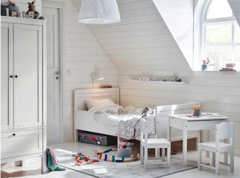 Małe meble mogą z łatwością stworzyć przytulny kącik artystyczny dla Twojego dziecka. Biurko dziecięce SUNDVIK zostało stworzone właśnie do tego. Odpowiedni rozmiar, miejsce do przechowywania pod pokrywą - i idealnie pasuje do krzesła SUNDVIK.