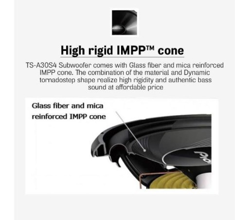 Chcesz uzyskać potężne, precyzyjne basy w swoim samochodzie? Ten wyposażony w bezszwowy stożek kompozytowy IMPP subwoofer zapewnia za sprawą ultrasztywnej, a zarazem lekkiej konstrukcji najwyższą trwałość i solidne brzmienie niskich tonów. Rezultatem takiego połączenia jest niski poziom zniekształceń oraz mocny bas przy wysokim poziomie natężenia dźwięku.