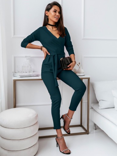 Zaznaczona talia modeluje sylwetkę a idealny krój kombinezonu ją wysmukla.