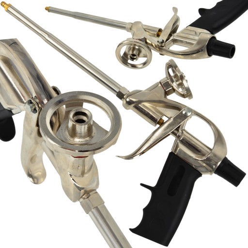 Pistolet przeznaczony do pianek montażowych. Pistolet posiada pokrętło umożliwiające precyzyjnie dozowanie pianki. Przy zamontowanym pojemniku z pianą pokrętło pozwala również na ponowne użycie pistoletu do 30 dni bez konieczności czyszczenia.
