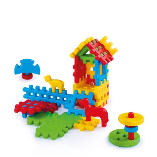 Zestaw składa się z 31 kolorowych elementów w różnych kształtach.