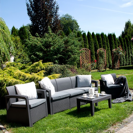 Konstrukcja mebli wykonana jest z tworzywa sztucznego na bazie polipropylenu, który jest odporny na pogodę i promieniowanie UV. Jest to solidny i trwały materiał, który zapewnia wieloletnie użytkowanie i jest łatwy w czyszczeniu. Bardzo szybki i łatwy montaż.