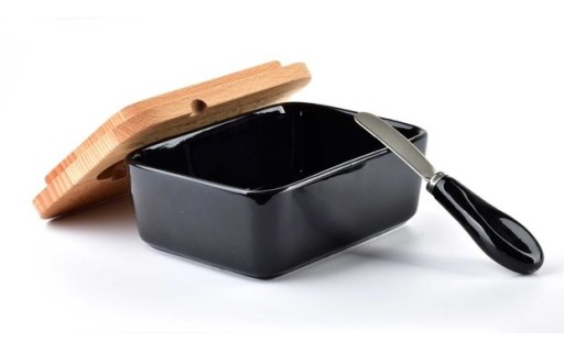- Dodatkowym atutem jest nożyk do masła, który włożony jest w pokrywę