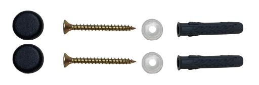 Do uchwytu dołączamy elementy montażowe tj. 2 szt. kołek rozporowy, 2szt. zaślepka na kołek.