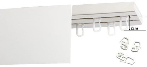 - Szerokość szyny i rozmieszczenie torów zapobiega nachodzeniu zasłon na siebie, zapewniając płynne przesuwanie zasłon