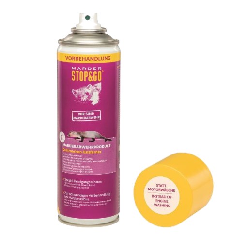 Zalecana przed podjęciem działań służących do odstraszania kun! Pianka do usuwania zapachu umożliwia redukcję zapachu kuny w miejsce ryzykownego mycia silnika.