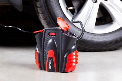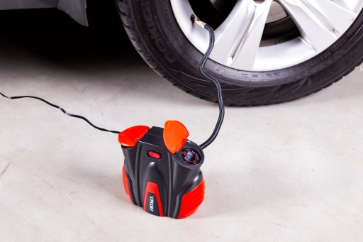 Wtyk zasilania 12V (pod samochodową zapalniczkę) pozwala na pompowanie w miejscach gdzie nie ma dostępu do sieci elektrycznej.