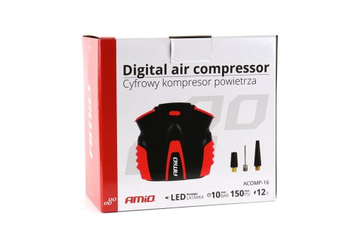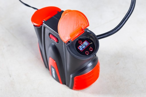 Cyfrowy wyświetlacz pozwala na wybór pożądanego ciśnienia aż do 150 PSI lub 10 bar, poprzez wciśnięcie włącznika urządzenie automatycznie napompuje oponę, materac czy piłkę do pożądanej wartości i automatycznie się wyłączy.
