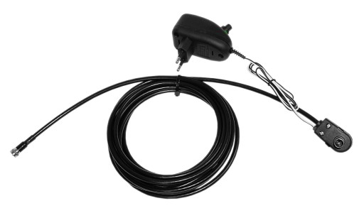 Zapraszamy do zakupu nowego, gotowego do podłączenia, wysokiej jakości czarnego kabla antenowego RG-59 o długości 3m wraz ze złączem typu F, zabezpieczonym rurką termokurczliwą i zasilaczem z regulacją wzmocnienia.