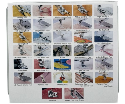 Zestaw 32 stopek Singer Łucznik Brother Janome do maszyna do szycia stopki