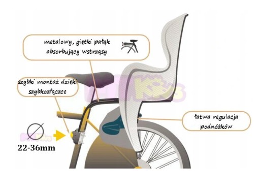 - fotelik pasuje do większości rowerów o średnicy koła 24-28 cali