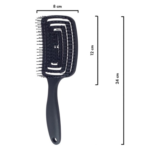 - profilowany, ażurowy, lekko wygięty korpus szczotki dostosowuje się do kształtu głowy, dzięki czemu zapewnia jej delikatny masaż, bez zbędnego ucisku;