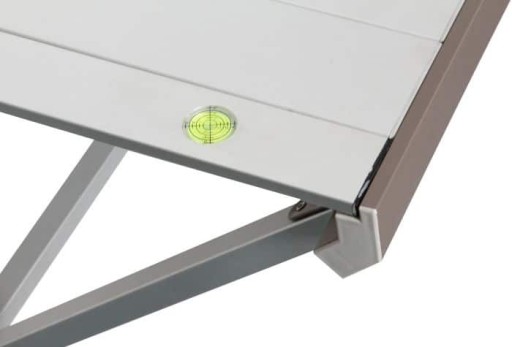 Jedna noga z blokadą położenia, co pozwala na wypoziomowanie stołu praktycznie w każdym terenie