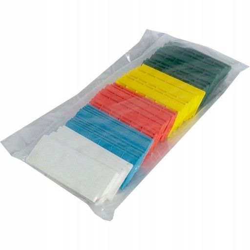 Pakowany w przeźroczyste worki foliowe. Jeden zestaw składa się aż z 5 grubości podkładek dystansowych. Zestaw zawiera: