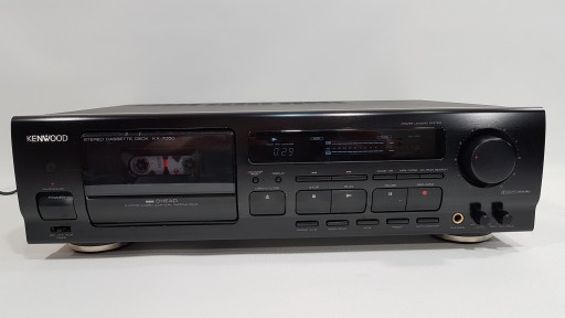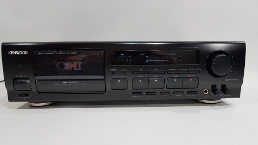 Zapraszam do zakupu magnetofonu kasetowego marki KENWOOD model KX-7050. Wyższy, dobry model pod względem brzmieniowym, prostocie obsługi i skuteczności. 3 głowice, 2 wałki i mocna strona jaką jest kalibracja w tym modelu - ATCS. Sprzęt całkowicie sprawny, bardzo ładnie kalibruje taśmy, nagrywa, odtwarza i przewija. Sprzęt po kompletnym przeglądzie - zostały wymienione paski, ogólna konserwacja jak i został oczyszczony tor przesuwu taśmy jak i cała komora kasety, pełen serwis przełączników i potencjometrów. Możliwość sterowania pilotem którego nie posiadam. Super extra bezpiecznie spakowana wysyłka w cenie. Polecam.