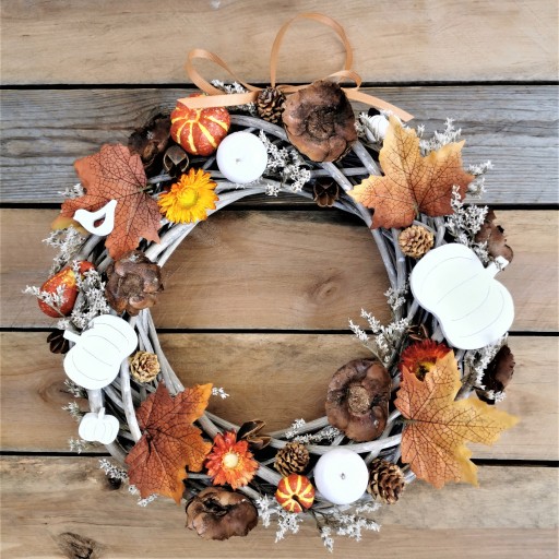 - Piękny jesienny wianek można dopasować do każdego wnętrza, sprawdzi się jako dekoracja na ścianę w Twoim domu jako oryginalna dekoracja która wprowadzi w nim jesienny klimat!
