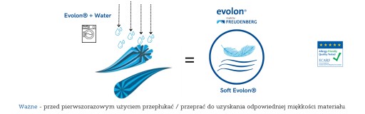 Evolon® jest zarejestrowanym znakiem towarowym firmy Carl Freudenberg KG, Niemcy . Skuteczność antyroztoczową, jak również właściwości antybakteryjne Evolon® potwierdzają certyfikaty wydane przez TÜV NORD, ECARF (Fundacja Europejskiego Centrum Badań nad Alergiami) jak również wyniki badań przeprowadzonych przez niezależne instytucje z różnych krajów: Hygiene-Institut des Ruhrgebiets, Gelsenkirchen (Niemcy), IBT Reference Laboratory (USA), IFTH – Institut Français du Textile Habillement (France), Hohenstein Research Institute, Bönnigheim (Niemcy), Deutsche Montan Technologie GmbH (Germany), FIATEC (Germany)