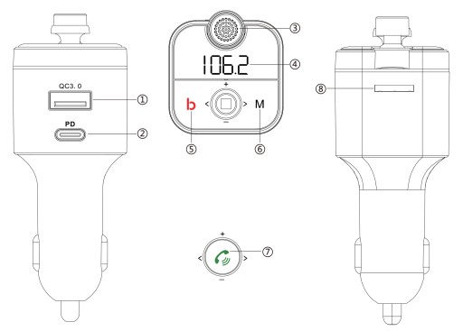 Najwyższej jakości transmiter FM, który łączy w sobie jednocześnie funkcję wysokiej klasy zestawu głośnomówiącego oraz ładowarki USB QC3.0 i ładowarki PD 20W - niezastąpiony element w każdym samochodzie.