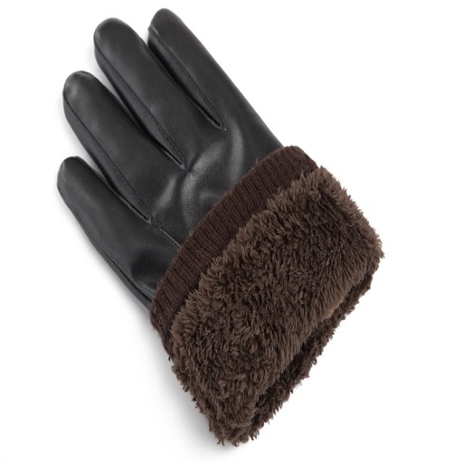 Brązowy ściągacz zapobiega wychłodzeniu środka rękawiczek.