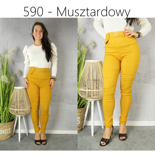 Spodnie bardzo ładnie wykonane i skrojone, podkreślaną kobiece walory. Ślicznie się układają. Najmodniejszy Wysoki stan i krój sprawia że modelują sylwetkę. Pas wykończony złotymi guziczkami