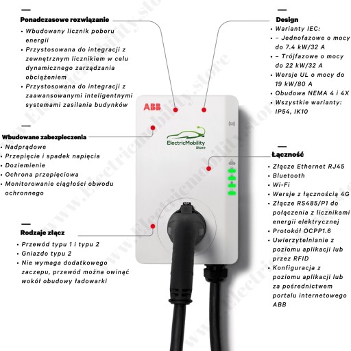 EVSE Stacja ABB Terra AC 22kW|Typu2|5m|RFID|4G