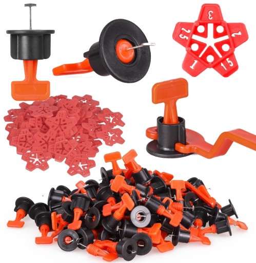 ZESTAW SYSTEMÓW DO POZIOMOWANIA PŁYTEK 100 ELEMENTÓW + 2 KLUCZYKI. W ZESTAWIE OTRZYMUJESZ GRATIS 50 SZTUK UNIWERSALNYCH GWIAZDEK WIELOKROTNEGO UŻYTKU
