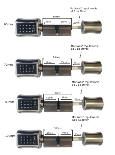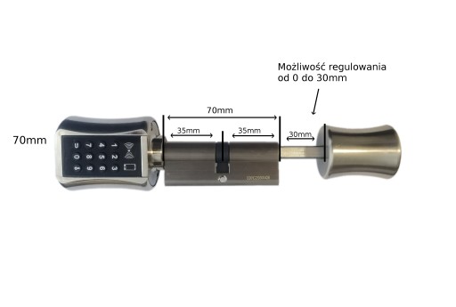 Bardzo łatwa i intuicyjna instalacja wkładki. Nie wymaga wymiany drzwi ani całego mechanizmu zamka. Na obrazku nr 6 jest pokazane że można regulować długość wkładki od strony wewnętrznej drzwi do 60mm, czyli od 35/35 mm do 35/65 mm. Gdzie od strony klawiatury do środka jest 35mm.