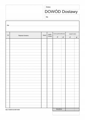 - Warianty wykonania bloczków: oryginał + kopia (1+1) lub oryginał + dwie kopie (1+2) itp.