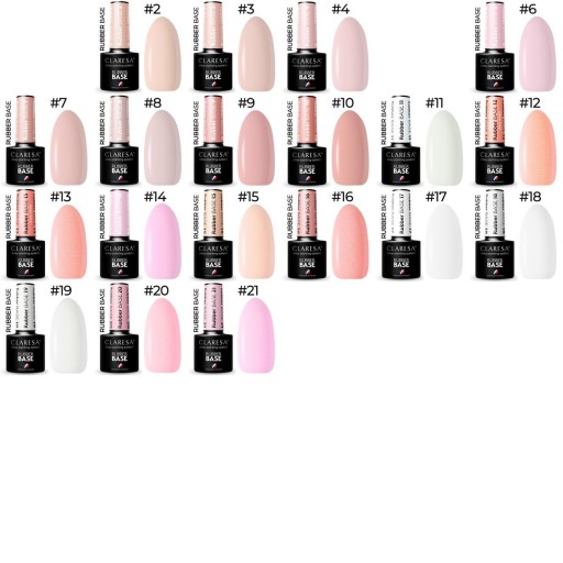 Bazy Rubber to bazy kauczukowe o średniogęstej konsystencji. Przeznaczone w szczególności do łamliwych, kruchych, problematycznych paznokci. Znacznie zwiększa przyczepność do naturalnej płytki paznokcia. Zawarta w bazie formuła kauczuku sprawia, że jest ona nie tylko elastyczna ale też trwała. Łatwo ją usunąć za pomocą Removera.