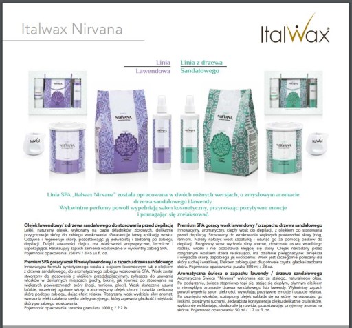 Aromatyczna depilacja SPA olejem „Italwax Nirvana” to innowacyjny sposób na usunięcie włosów, luksusowy zabieg z całkowitą pielęgnacją skóry.