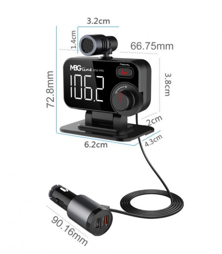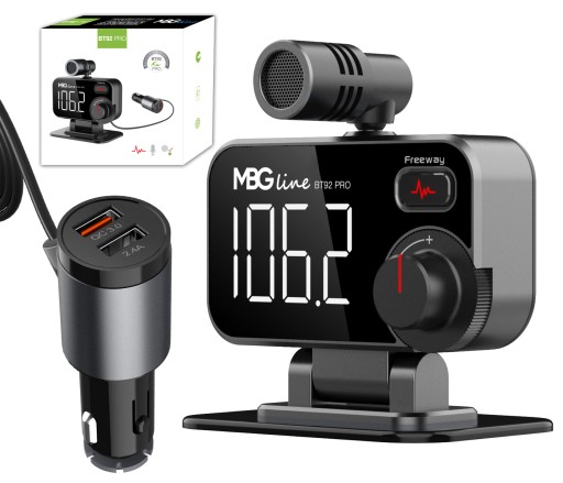 Transmiter FM + Zestaw głośnomówiący + Woltomierz + Super szybka ładowarka USB MBG LINE BT92 PRO