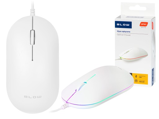 Mysz BLOW MP-60 charakteryzująca się wyjątkowym designem oraz delikatnym kolorowym podświetleniem LED przeznaczona jest do pracy z większością systemów operacyjnych. Rozdzielczość optyczna 1000 DPI pozwala na wydajną i precyzyjną pracę na prawie każdej powierzchni. Jej wykonanie zadowoli każdego użytkownika - idealnie sprawdzi się w domu oraz w biurze.