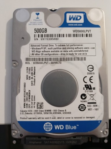 Używany Dysk Twardy 500 GB HDD SATA 2,5''