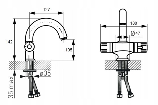 - Wąż: 150 cm (metalowy oplot)