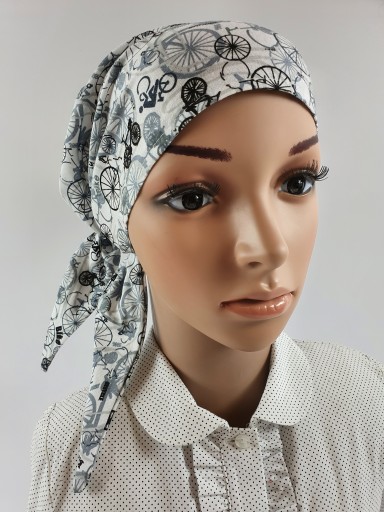 Jak mogłyście zauważyć, nasze chusteczki dostępne są tylko w jednym, uniwersalnym rozmiarze. Jest to możliwe dzięki gumce wszytej z tyłu materiału – sprawia ona, że chustka pasuje na każdy obwód głowy i nie zsuwa się z niej. Możemy zapewnić, że nie będziesz miała problemu z jej założeniem ani wiązaniem, które jest banalnie proste.