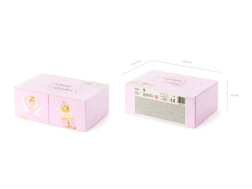 Kalendarz adwentowy z wypełnieniem, zestaw zawiera szkatułkę i 24 elementy wypełnienia, rozmiar szkatułki ok. 23 x 15 x 9.5 cm