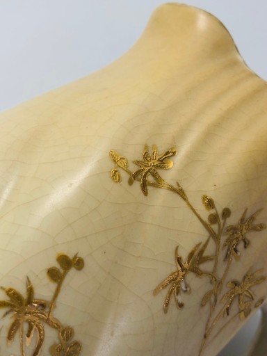 XIX wieczny ceramiczny dzban. Piekna kolorystyka i pozlacane zdobienia - motyw roslinny. Pochodzenie pólnocna Anglia.