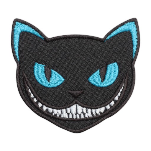 Naszywka KOT z CHESHIRE wykonana za pomocą techniki haftu komputerowego.