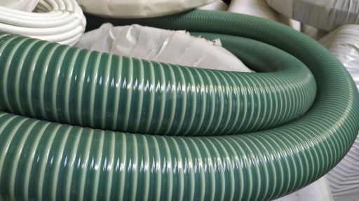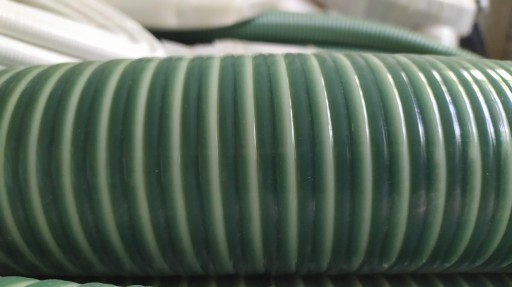 Wąż ze zmiękczonego PVC ze spiralą z twardego PVC oraz gładką powierzchnią wewnętrzną.