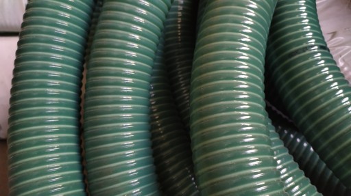 Wąż ze zmiękczonego PVC ze spiralą z twardego PVC oraz gładką powierzchnią wewnętrzną.