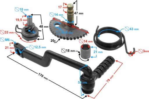 - długość całkowita dźwigni rozrusznika: 185 mm