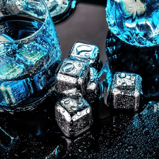 Zestaw stalowych kostek lodu do chłodzenia drinków i napojów. W przeciwieństwie do swoich klasycznych odpowiedników, te wykonane ze stali nierdzewnej kostki nie zmieniają jakości napoju, a co za tym idzie pozwalają nam cieszyć się pełnią jego smaku. Są trwałe, całkowicie bezpieczne dla zdrowia i można ich używać wielokrotnie. Gładkie krawędzie nadają im eleganckiego wyglądu. Do tego nie kruszą się oraz nie wchłaniają zapachów.