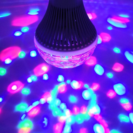 Dyskotekowa żarówka RGB tworzy pożądane efekty świetlne, przypominające te z prawdziwej dyskoteki czy klubu.