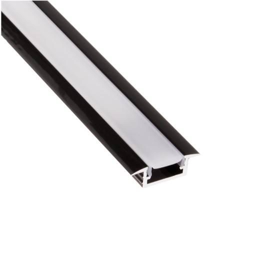 Profil ALU wpuszczany do taśmy LED mleczny 2m czarny + mleczna przesłona
